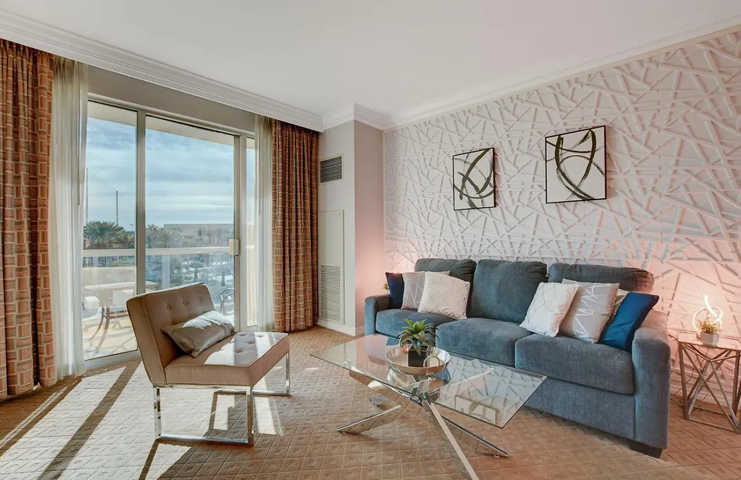 L'hotel Serenity Suite At Mgm Signature Las Vegas vanta camere con un patio e un balcone e un camino in pietra per la tua comodità. Gli ospiti possono usufruire di un impianto di climatizzazione, nonché di servizi per la preparazione di tè/caffè. Dotati di un bagno con WC separato e una doccia, i bagni sono provvisti di asciugacapelli e teli da bagno.